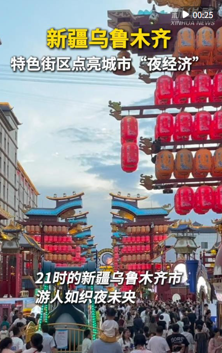在烏魯木齊市的天山明月城特色街區(qū),這里匯集了餐飲、休閑娛樂、歌舞演藝等業(yè)態(tài),每天都有各類演出活動,在豐富市民游客文化活動的同時,激發(fā)消費活力,助力“夜經(jīng)濟(jì)”發(fā)展。
