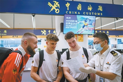 “世運(yùn)會(huì)期間正值暑運(yùn)高峰,成都天府國際機(jī)場(chǎng)出入境人數(shù)較平常增加了1.5倍,我們優(yōu)化了智能檢查通道,保障旅客快捷通關(guān);還開設(shè)了世運(yùn)會(huì)專用窗口,為涉賽人員提供通關(guān)、咨詢等‘一站式’服務(wù)?!背啥己jP(guān)相關(guān)負(fù)責(zé)人薛珂說。據(jù)了解,8月3日至18日是成都世運(yùn)會(huì)官方抵離服務(wù)期,預(yù)計(jì)將有超過5000名涉賽人員從成都天府國際機(jī)場(chǎng)等口岸通關(guān)。