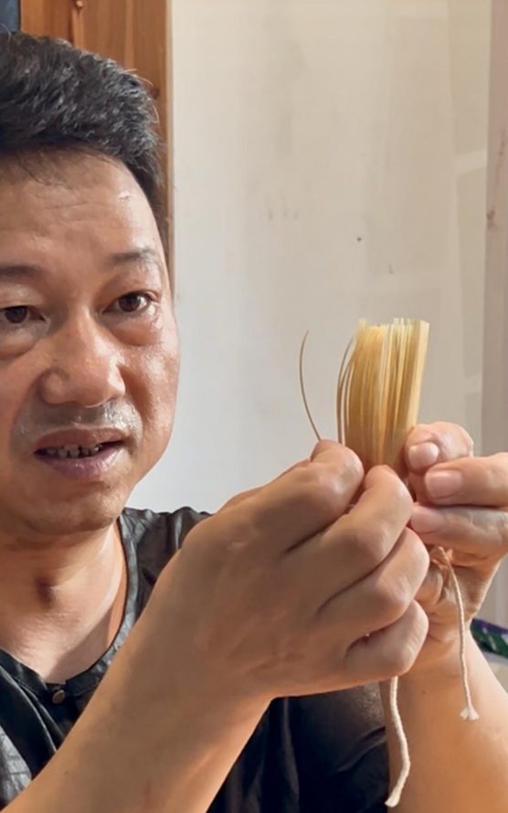 在杭州市余杭區(qū)徑山村,走出茶道空間,不遠(yuǎn)處,是“茶筅制作技藝”非遺項(xiàng)目代表性傳承人陳金信工作室。“這是茶筅,抹茶中用來融化茶粉的工具,其實(shí)起源于我們中國?!痹陉惤鹦诺那墒窒拢话焉㈤_的茶穗,漸成彎曲形狀。