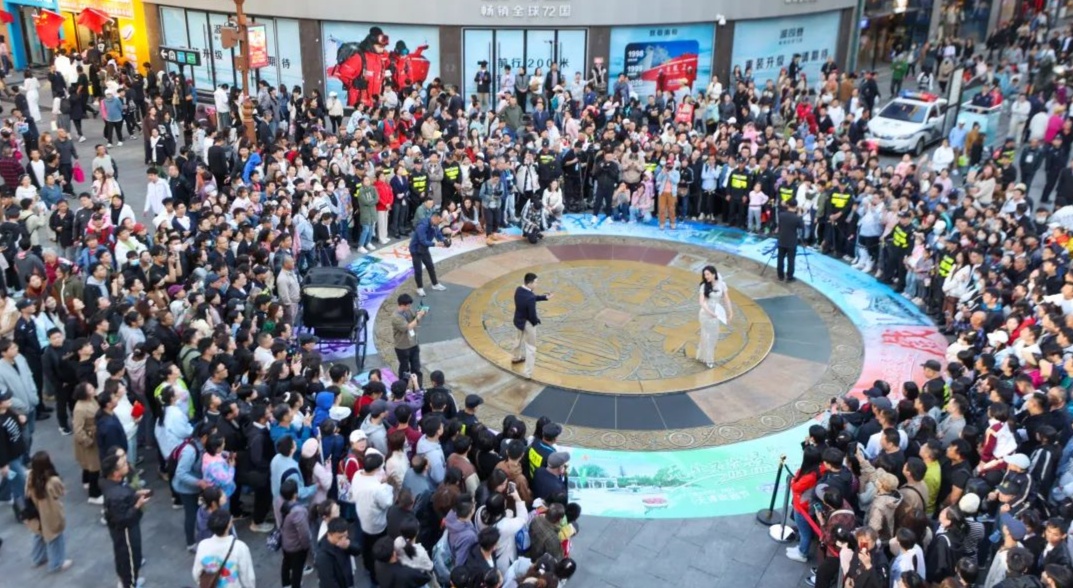 “抬頭看!茶花女在陽臺(tái)唱《飲酒歌》!”今年端午假期,意式風(fēng)情區(qū)洋樓陽臺(tái)秒變歌劇包廂,觀眾不用買票,端著冰淇淋就能聽威爾第。同一時(shí)刻,金街大銅錢廣場(chǎng)《日出》沉浸式上演,“陳白露”從民國海報(bào)里走下來,旗袍一擺,鉆進(jìn)人群;古文化街戲樓前,群口快板《花板唱響文化街》竹板翻飛,游客還沒反應(yīng)過來,已被拉進(jìn)“包袱”里。