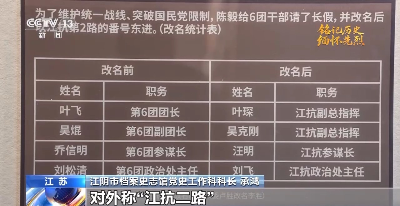 江陰市檔案史志館黨史工作科科長(zhǎng) 承鴻:1939年4月,新四軍軍部部署六團(tuán)準(zhǔn)備向東路地區(qū)發(fā)展。5月,六團(tuán)在葉飛、吳焜等率領(lǐng)下,從(江蘇)茅山地區(qū)出發(fā)東進(jìn)。為了防止國(guó)民黨頑固派阻撓和破壞,六團(tuán)沿用“江南抗日義勇軍”的番號(hào),以地方抗日武裝的名義,對(duì)外稱江抗二路。吳焜化名吳克剛,任副總指揮兼二路司令,隨同葉飛東進(jìn)。