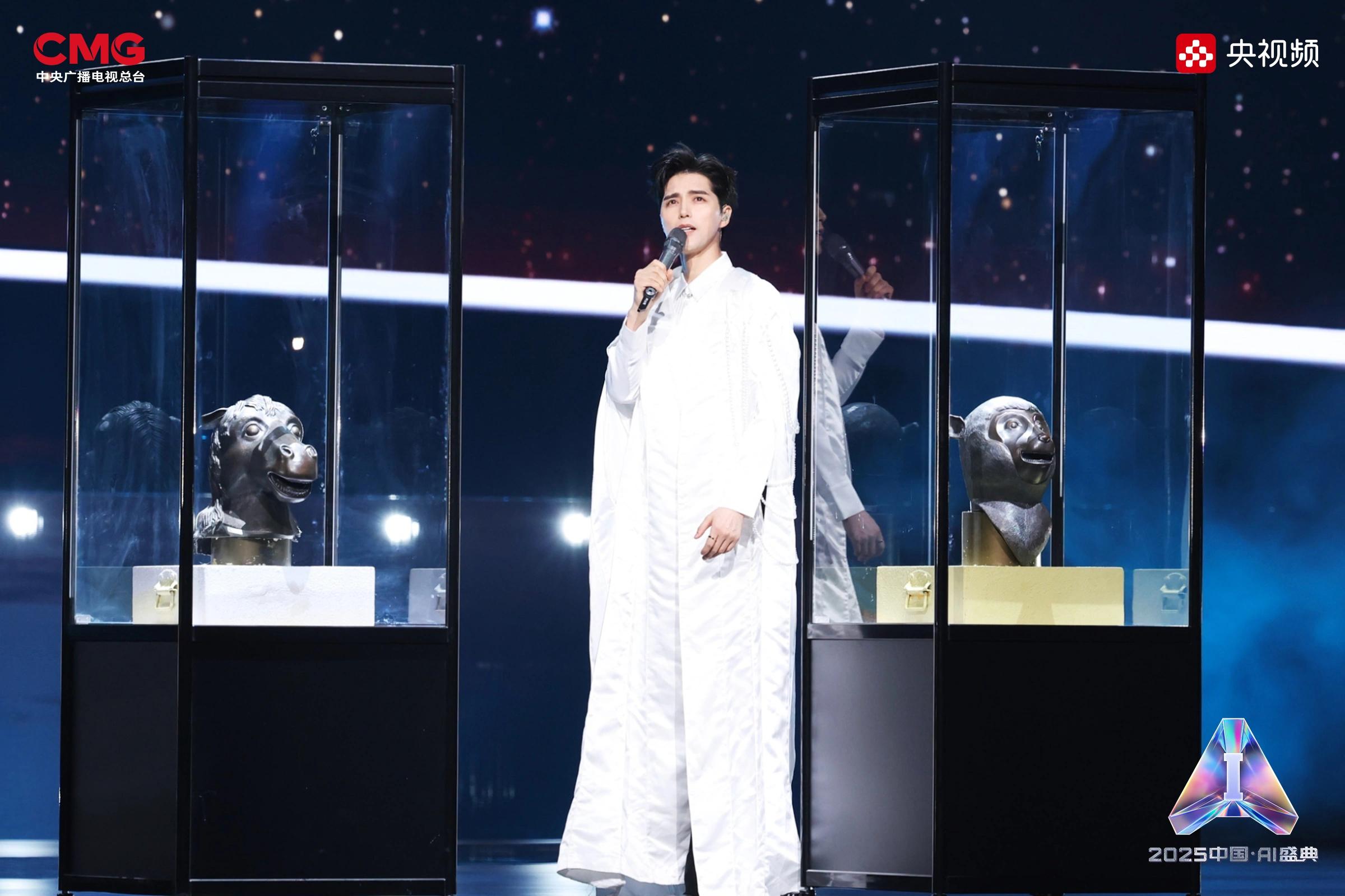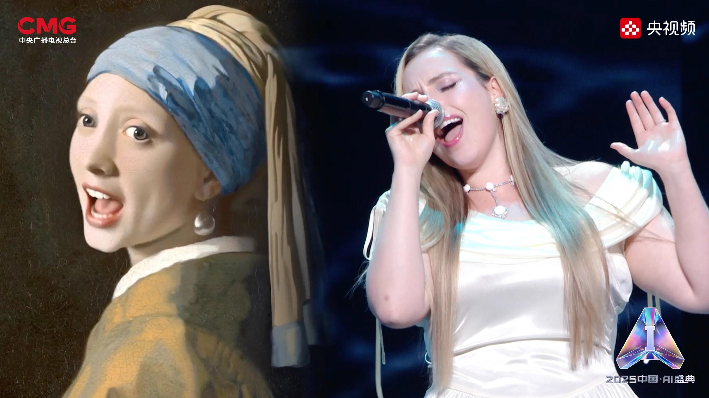 相AI相生,是藝術(shù)想象的無限延展。在AI技術(shù)的賦能下,沉睡的文物重獲新生:圓明園“十二獸首”(復(fù)制品)聚首盛典舞臺(tái),他們化身十二樂師與歌手阿云嘎共同演繹《浮光·十二獸首歸來》,向世界展現(xiàn)東方文化藝術(shù)的魅力;《戴珍珠耳環(huán)的少女》在MiniMax海螺(Hailuo02)視頻模型的驅(qū)動(dòng)下翩然起舞,與歌手Grace Kinstler隔空對唱《This Is Me》;虛擬偶像“星瞳”與歌手黃齡突破次元壁,浪漫演繹金曲《玫瑰玫瑰我愛你》;根據(jù)歌手張英席、石倚潔、蔡程昱照片生成的數(shù)字人將與“本尊”同臺(tái)獻(xiàn)唱,以中、英、意等語言詮釋經(jīng)典歌劇歌曲《今夜無人入眠》;AIGC技術(shù)更讓兵馬俑開啟環(huán)球之旅,在東西方文明的對話中完成文化使者的使命。