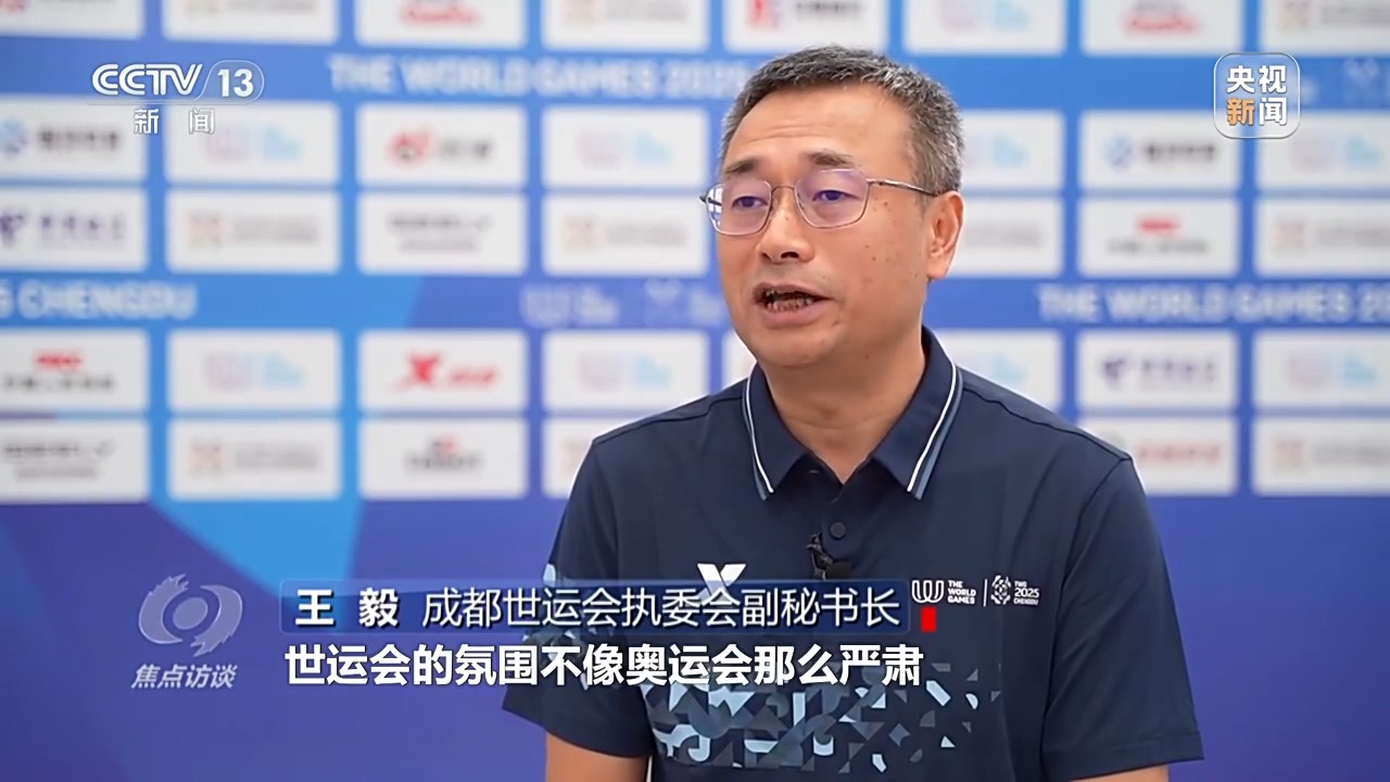 成都世運(yùn)會執(zhí)委會副秘書長 王毅:世運(yùn)會聚焦的點(diǎn)主要是非奧比賽項(xiàng)目,世運(yùn)會的氛圍不像奧運(yùn)會那么嚴(yán)肅,既有競技體育的對抗性,也強(qiáng)調(diào)趣味性和參與感,這是一個(gè)融合了傳統(tǒng)與現(xiàn)代的體育嘉年華。