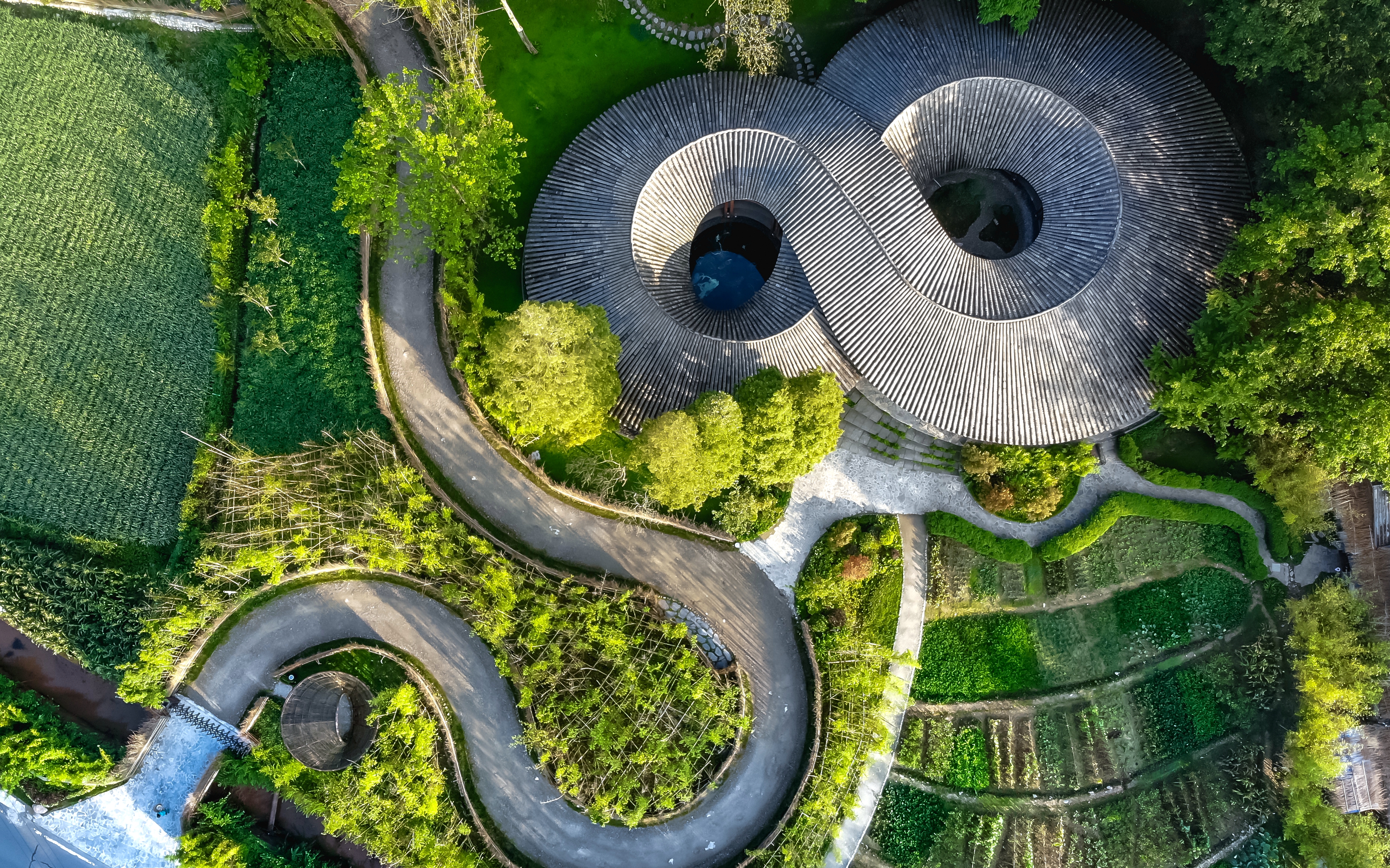 日暮時(shí)分,竹藝村的地標(biāo)性建筑“竹里”被覆上一層金輝。從空中俯瞰這個(gè)坐落在竹藝村的“網(wǎng)紅”建筑,形狀如同數(shù)學(xué)符號(hào)中代表無(wú)窮的“∞”。竹文化無(wú)窮,竹編路無(wú)限,讓人不禁期待竹藝村更加精彩的未來(lái)……