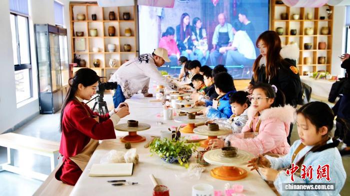 黃彬彬帶領(lǐng)團隊在豬圈改造的窯文化館上陶藝課。受訪者供圖