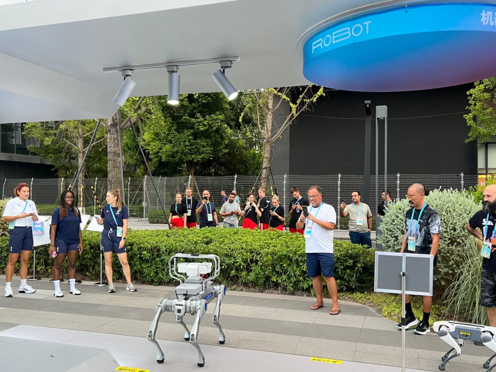 戴上AR翻譯眼鏡,葡萄牙運(yùn)動(dòng)員和德國(guó)選手開啟無(wú)障礙暢聊;美國(guó)選手一句“GoGo,帶我去熊貓商店”,智能機(jī)器狗聞聲而動(dòng);土耳其選手和智能運(yùn)動(dòng)搭子練起了球;澳大利亞姑娘欣賞著美甲機(jī)器人噴繪的熊貓圖案……