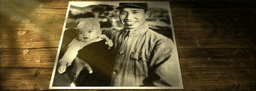 這是左權(quán)將軍懷抱著女兒,父女臉上露出微笑的動態(tài)老照片。