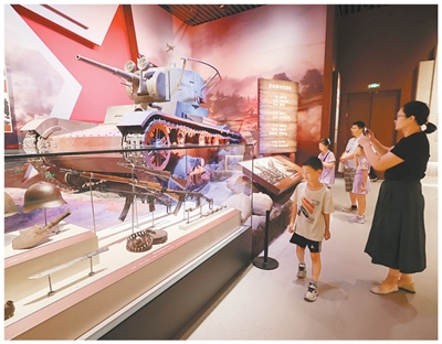 中國人民抗日戰(zhàn)爭紀念館《為了民族解放與世界和平》主題展覽展示蘇聯(lián)援華物資和武器。