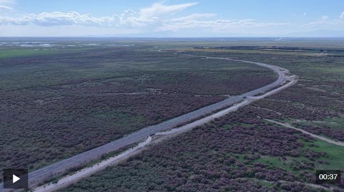 放眼望去,廣袤的戈壁灘上,一簇簇紅柳舒展著堅韌的枝條,粉紫色的花穗鋪滿天際。在陽光的照射下,千萬株紅柳在沙地上投下斑駁的疏影,與金黃的沙丘、湛藍(lán)的天空形成強(qiáng)烈的色彩對比,構(gòu)成一幅動人的生態(tài)畫卷。