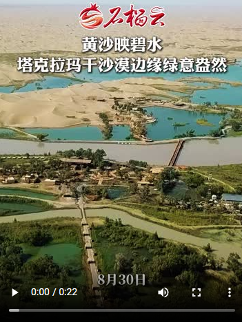 8月30日,位于塔克拉瑪干沙漠邊緣的新疆尉犁縣羅布人村寨,風(fēng)景秀美,綠意盎然。受近期汛期洪水的滋潤,塔里木河兩岸植被生長旺盛,沿岸一派生機勃勃的景象。