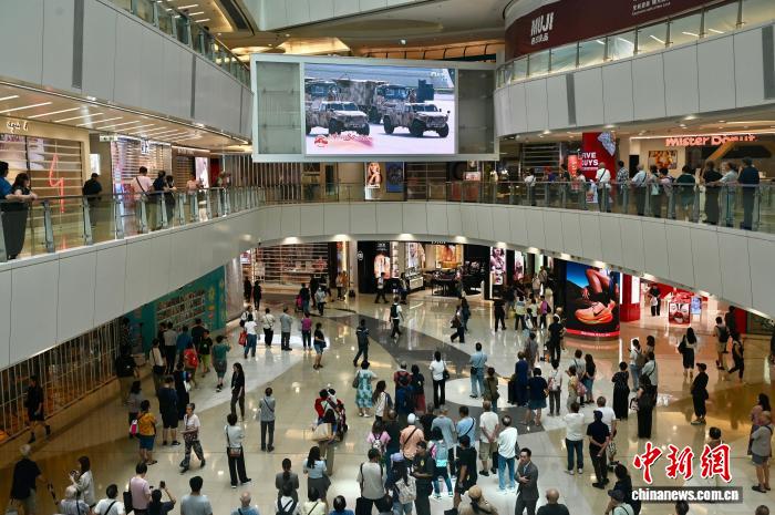 在香港的不少商場里,許多市民也被大屏幕上的直播所吸引,加入觀看行列。香港市民陳染說,她特意帶孩子去大屏前,一同感受這承載著歷史重量的時刻。