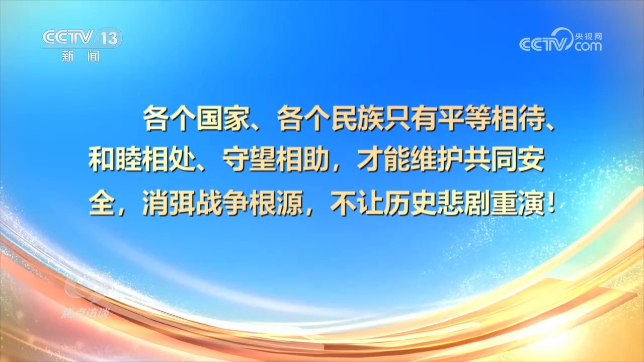 楊鳳城:“總書記在這次紀(jì)念抗戰(zhàn)勝利80周年的講話,還有過去的講話,都特別強(qiáng)調(diào)我們銘記歷史,緬懷先烈,不是為了延續(xù)仇恨,是為了珍愛和平,聚焦發(fā)展。中國共產(chǎn)黨不僅是這么說的,也是這么做的。我們提出了全人類共同價(jià)值,提出了構(gòu)建人類命運(yùn)共同體,實(shí)踐‘一帶一路’,說明什么?說明中國共產(chǎn)黨從中國人民,從自身的經(jīng)歷中,深深體會到和平的可貴,深深認(rèn)識到發(fā)展的重要?!?/p>