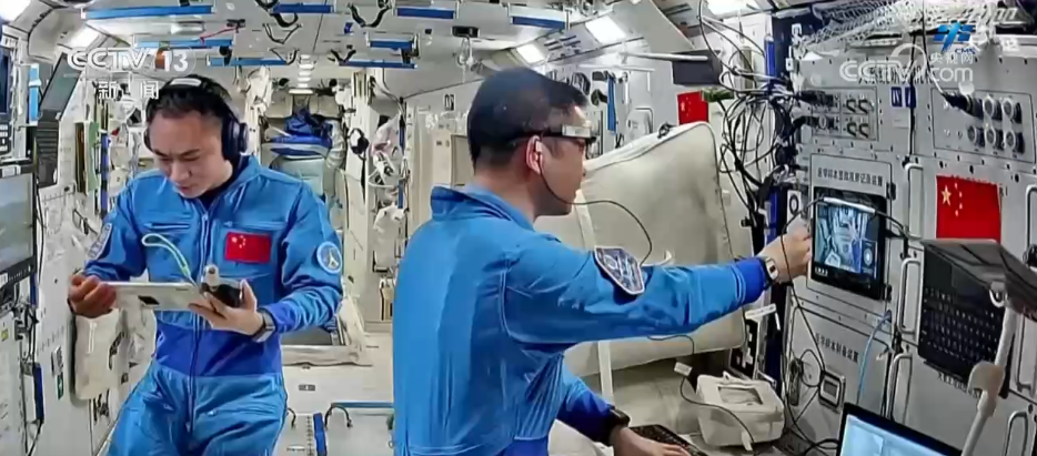 在健康維護與保障方面,乘組完成了質量測量、聽力測試等多項醫(yī)學檢查,積極進行身體鍛煉,并利用神經(jīng)肌肉刺激儀進行肌肉放松與萎縮防護,對抗失重生理效應。