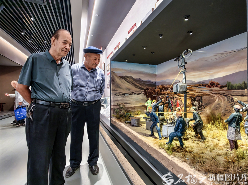 9月8日,庫爾勒市市民在巴州鑄牢中華民族共同體意識主題展館講述庫爾勒市近年來的變化。