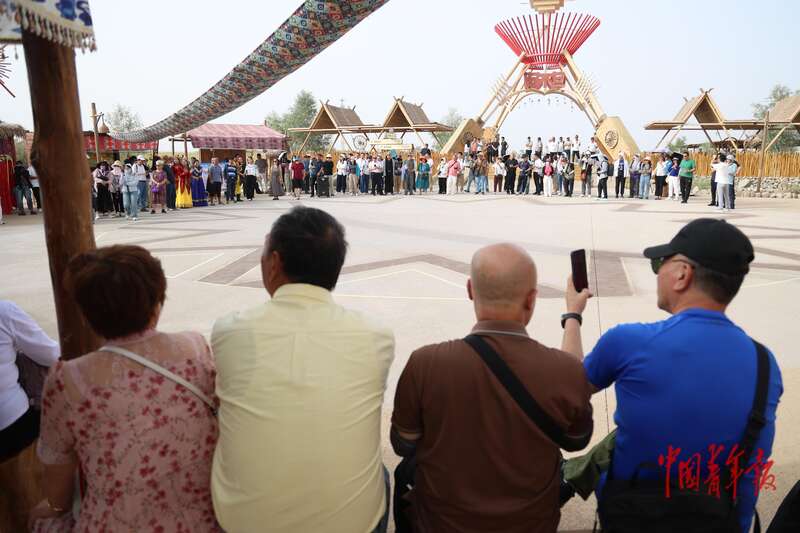 9月9日,新疆巴州尉犁縣羅布人村寨景區(qū),游客等待演員登場(chǎng)演出。中青報(bào)·中青網(wǎng)記者 王鑫昕/攝