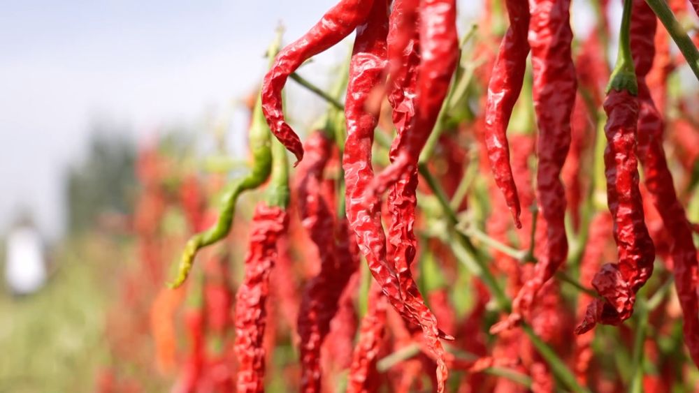 眼下,新疆巴音郭楞蒙古自治州焉耆縣的14萬畝工業(yè)辣椒進入采收季,種植戶搶抓晴好天氣采摘辣椒。