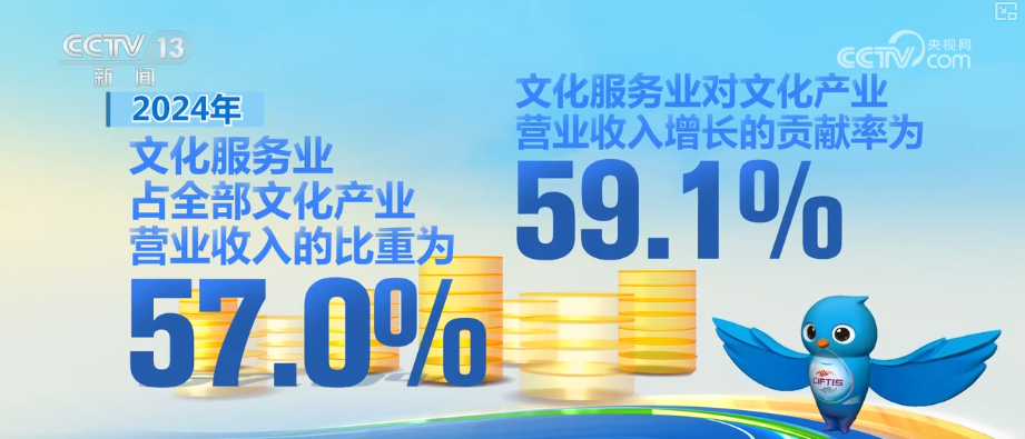 2024年,全國文化產(chǎn)業(yè)實現(xiàn)營業(yè)收入191423億元,營收規(guī)模再創(chuàng)歷史新高,比上年增長7.1%。2024年,文化服務業(yè)實現(xiàn)營業(yè)收入109134億元,比上年增長7.4%,占全部文化產(chǎn)業(yè)營業(yè)收入的比重為57.0%,文化服務業(yè)對文化產(chǎn)業(yè)營業(yè)收入增長的貢獻率為59.1%。