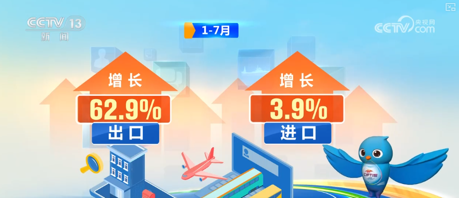 2025年,我國服務貿(mào)易穩(wěn)步增長,旅行服務出口增長最快。1—7月,旅行服務進出口達12594.6億元,增長10.4%。其中,出口增長62.9%、進口增長3.9%。