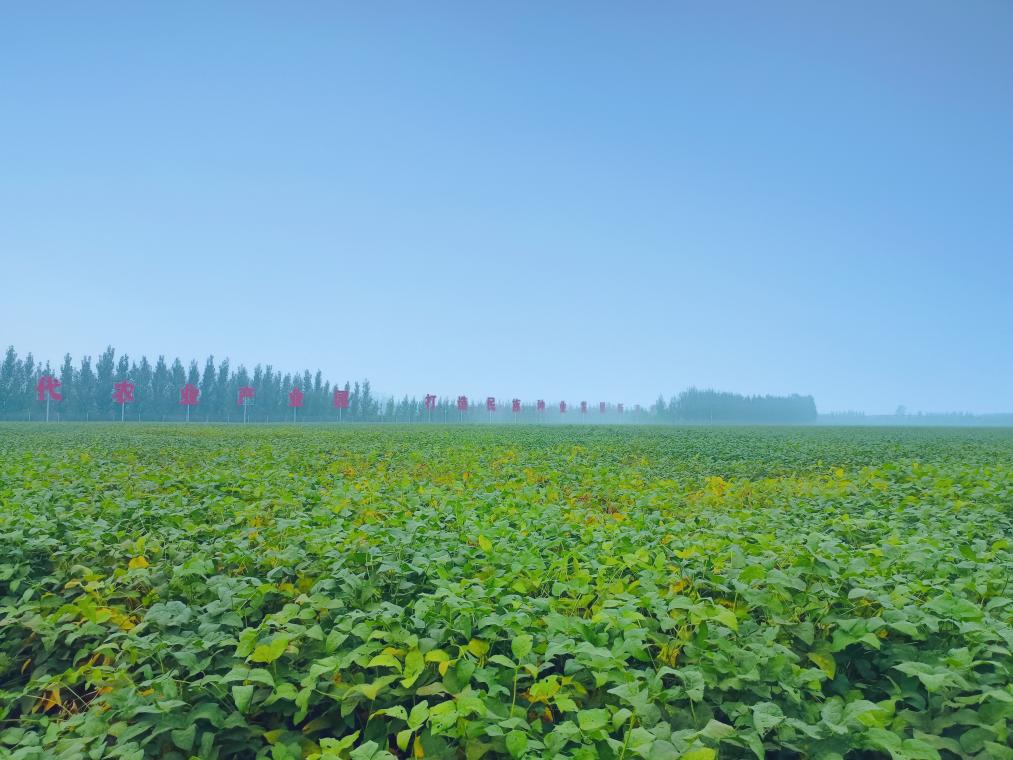 在山東省濟(jì)寧市嘉祥縣國家現(xiàn)代農(nóng)業(yè)產(chǎn)業(yè)園大豆原種繁育基地,一片片大豆長勢喜人。(受訪者供圖)