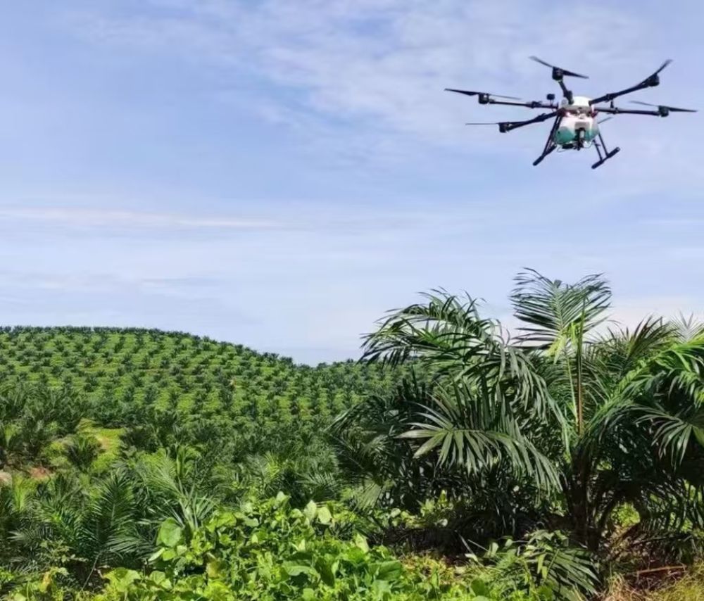 無人機(jī)在馬來西亞智慧棕櫚園識(shí)別作業(yè)。(潤(rùn)建股份供圖)