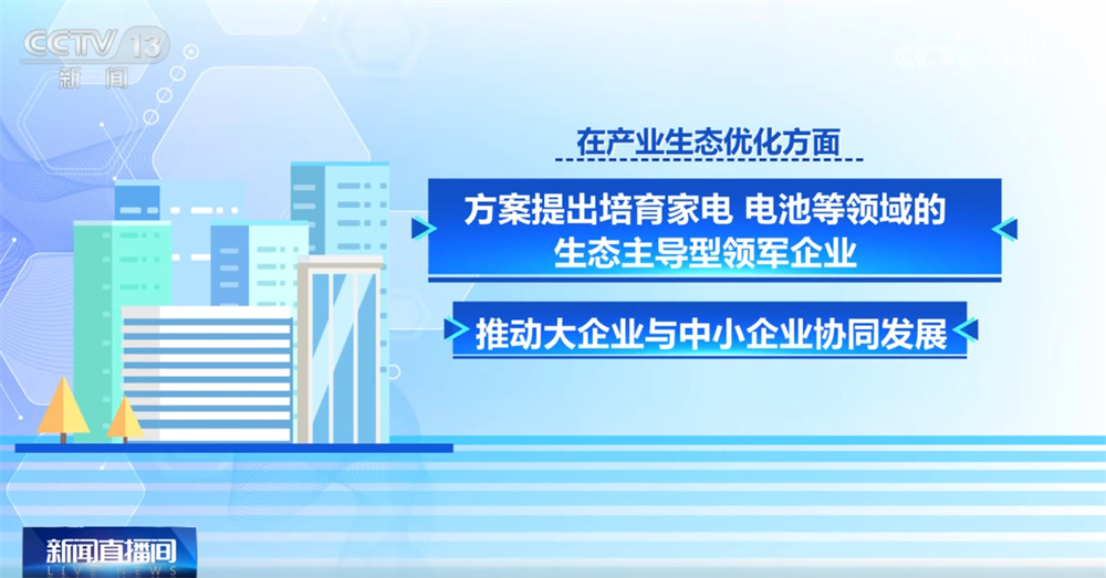 在產(chǎn)業(yè)生態(tài)優(yōu)化方面,方案提出培育家電、電池等領(lǐng)域的生態(tài)主導型領(lǐng)軍企業(yè),推動大企業(yè)與中小企業(yè)協(xié)同發(fā)展;分批打造輕工業(yè)特色產(chǎn)區(qū),引導企業(yè)向中西部轉(zhuǎn)移,淘汰落后產(chǎn)能;通過產(chǎn)融合作、知識產(chǎn)權(quán)質(zhì)押貸款等方式,培育世界一流企業(yè)和專精特新“小巨人”企業(yè)。