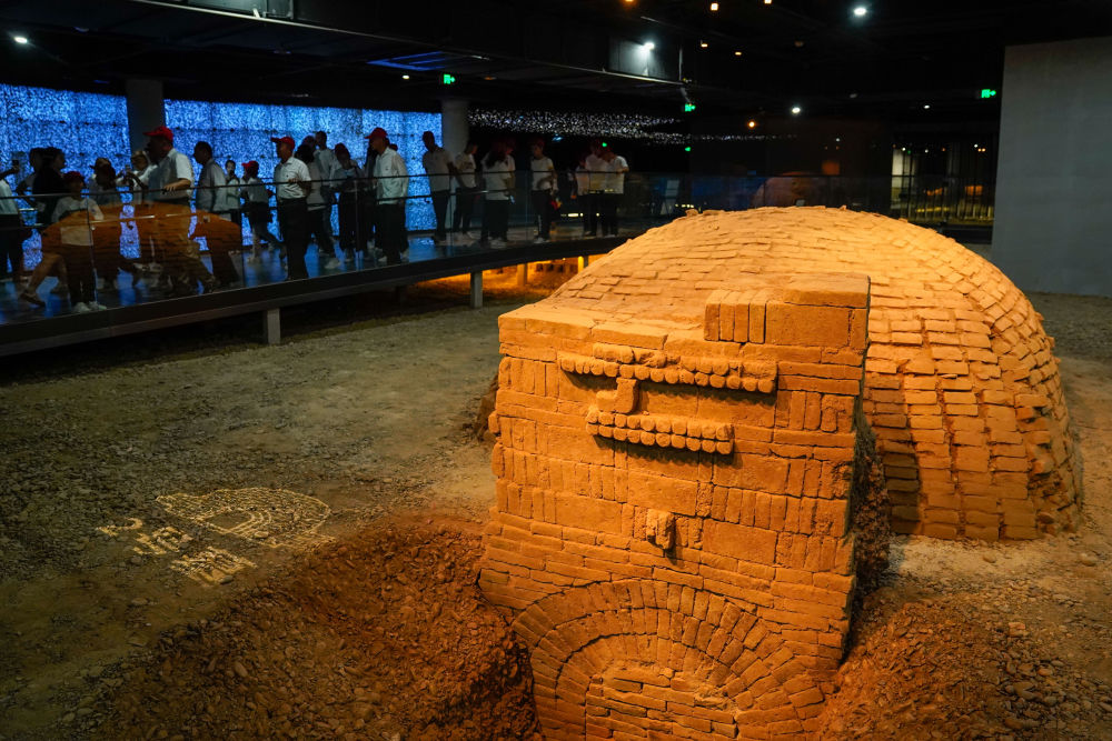 在庫(kù)車(chē)市友誼路鬧市區(qū),地下七八米深處,藏著新疆首座地下遺址博物館——龜茲魏晉遺址博物館,游客可以近距離觀賞珍貴的漢式磚室墓群。