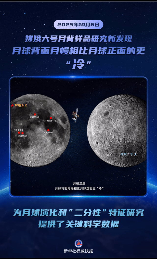 10月6日,國(guó)家航天局和國(guó)家原子能機(jī)構(gòu)聯(lián)合發(fā)布嫦娥六號(hào)月球背面樣品研究最新成果。我國(guó)科學(xué)家首次基于嫦娥六號(hào)月球背面樣品(月壤)研究發(fā)現(xiàn),月球背面月幔相比月球正面的更“冷”,進(jìn)一步深化了人類對(duì)月球“二分性”現(xiàn)象的認(rèn)識(shí),為月球正面與月球背面的月幔溫度差異提供了巖石學(xué)與地球化學(xué)等科學(xué)依據(jù),為月球演化和“二分性”特征研究提供了科學(xué)數(shù)據(jù)。
