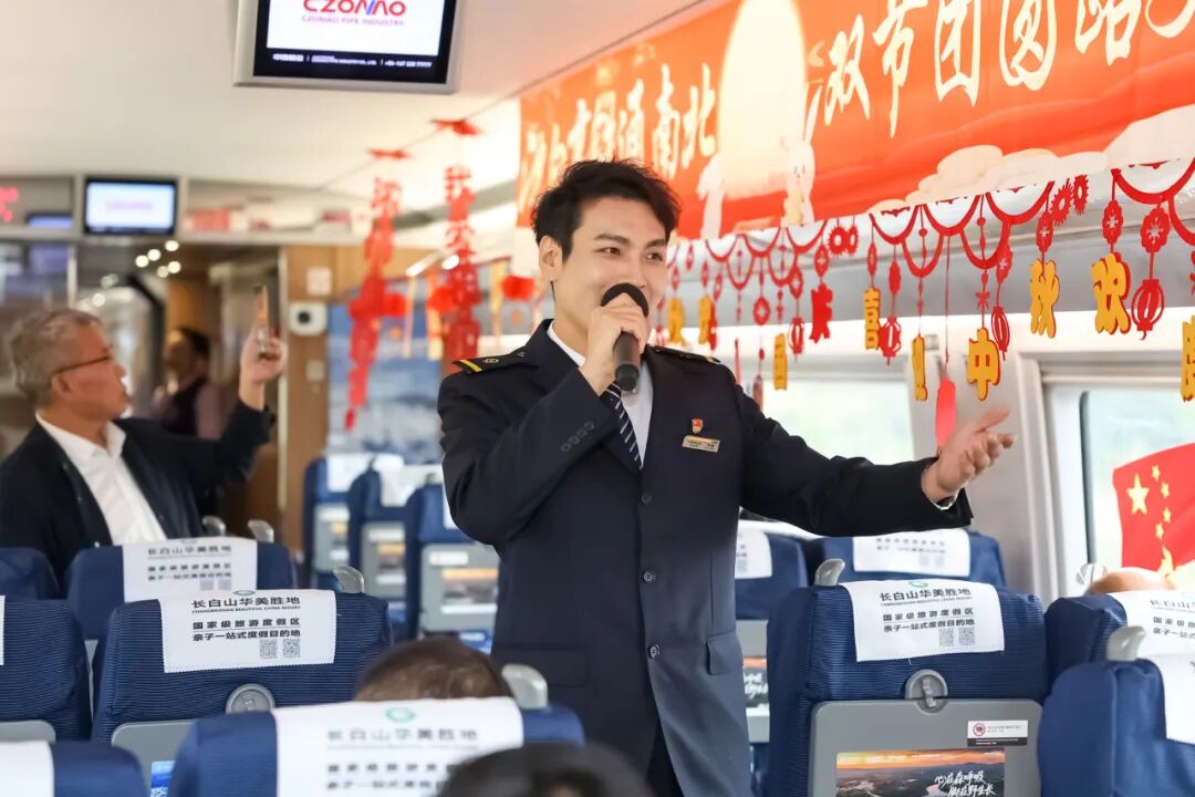 沈佳高鐵沈白段開通運營后,迎來第一個國慶中秋假期。長春客運段在長春至青島北的G3565次列車上舉辦“‘我的鐵路風(fēng)景’——沈白高鐵通南北 雙節(jié)團圓路更捷”列車聯(lián)歡活動。