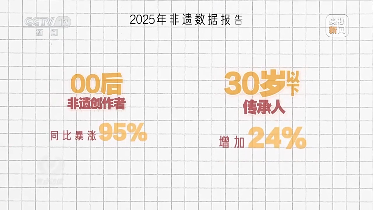 也許有人覺得這些故事太個別,所以我找到了某短視頻平臺今年的非遺數(shù)據(jù)報告,也很能說明問題。報告中提到,一年來00后非遺創(chuàng)作者同比暴漲95%,30歲以下傳承人增加24%。越來越多年輕人主動扛起了傳承的擔(dān)子。為啥他們愿意一頭扎進這些“老行當(dāng)”?我找到了幾位新生代代表性傳承人,試著解開這份“偏愛”背后的密碼。