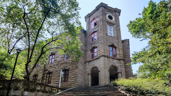 在工學(xué)院樓不遠(yuǎn)處就是“七七抗戰(zhàn)大禮堂”,它因紀(jì)念“七七事變”而得名。1937年,國(guó)立中央大學(xué)(今南京大學(xué) 東南大學(xué)等高校前身)西遷入渝。重慶大學(xué)拿出約200畝土地供中央大學(xué)使用,中央大學(xué)主持修建了大禮堂。