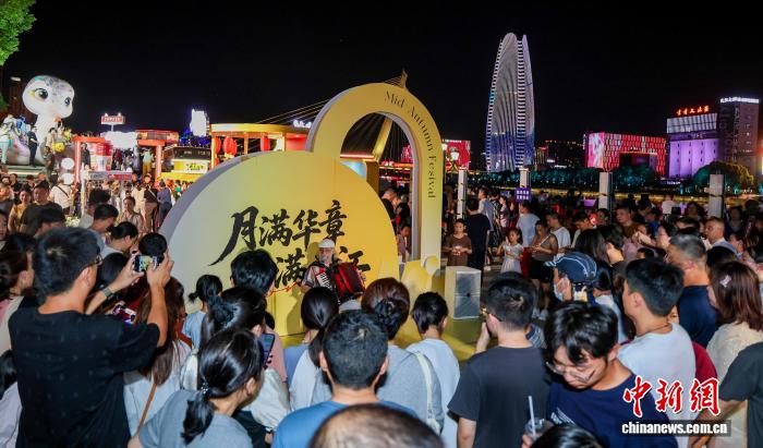 中新網(wǎng)寧波10月6日電(林波)10月6日晚,悠揚(yáng)的手風(fēng)琴在浙江寧波老外灘響起。