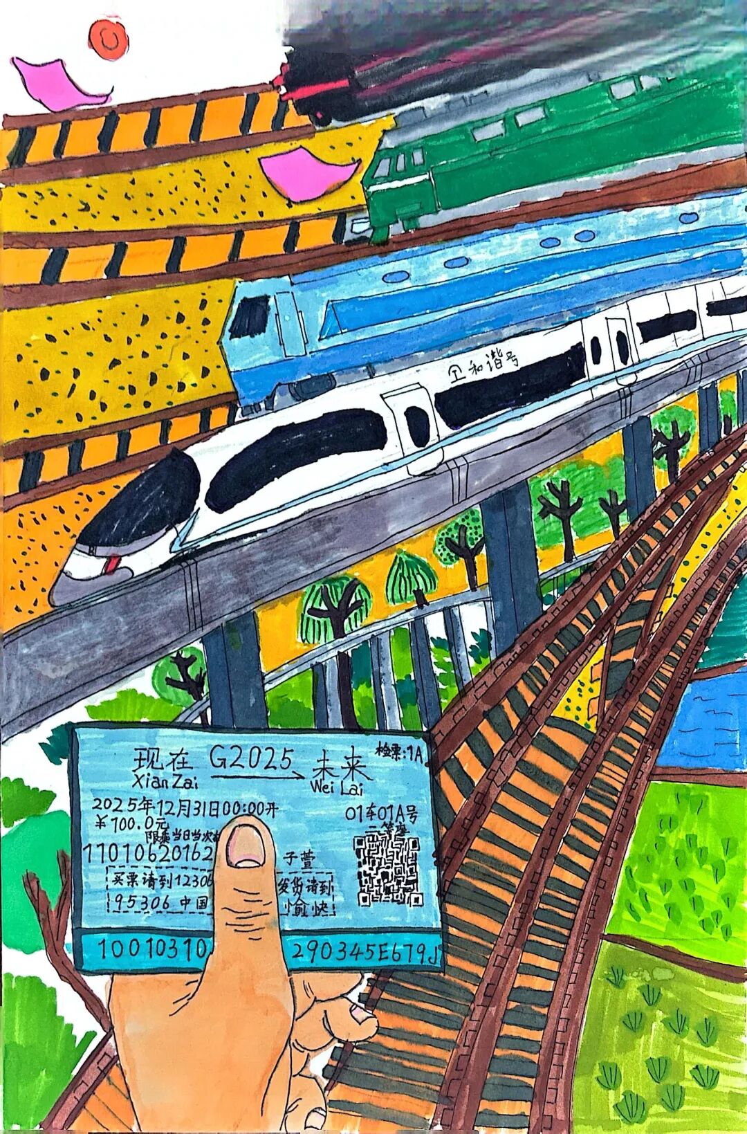 現(xiàn)在我坐在復興號里,看電子屏上顯示列車時速達到350公里,青檀樹在窗外連成流動的綠瀑。乘務員推著餐車經(jīng)過,玻璃幕墻外閃過曲阜孔廟的金色鴟吻。包里裝著曾曾祖父的鐵路修建圖影印件,那些泛黃的等高線正被新時代的測繪儀重新勾勒。