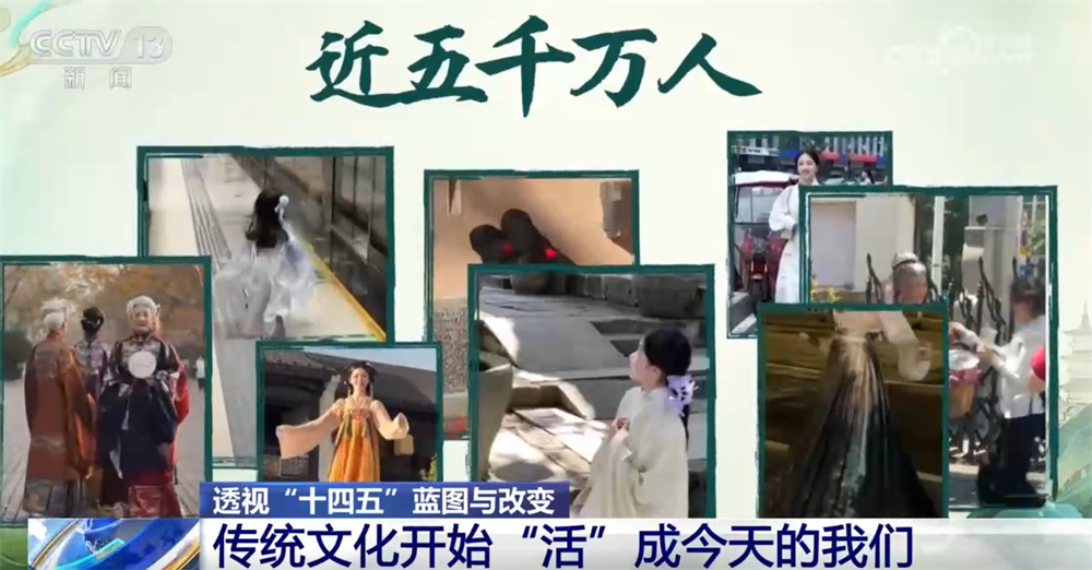 央視網(wǎng)消息:過去,我們在課本里背古詩、學(xué)歷史;今天,我們身著漢服走上街頭,在旅行打卡、短視頻創(chuàng)作中重新感受傳統(tǒng)。五千年的文化正在從書頁走向街頭,從展廳走進(jìn)生活,成為我們?nèi)粘5囊徊糠??!笆奈濉钡奈迥?,讓文化真正“活”在了?dāng)下,也“活”進(jìn)了我們的生活。