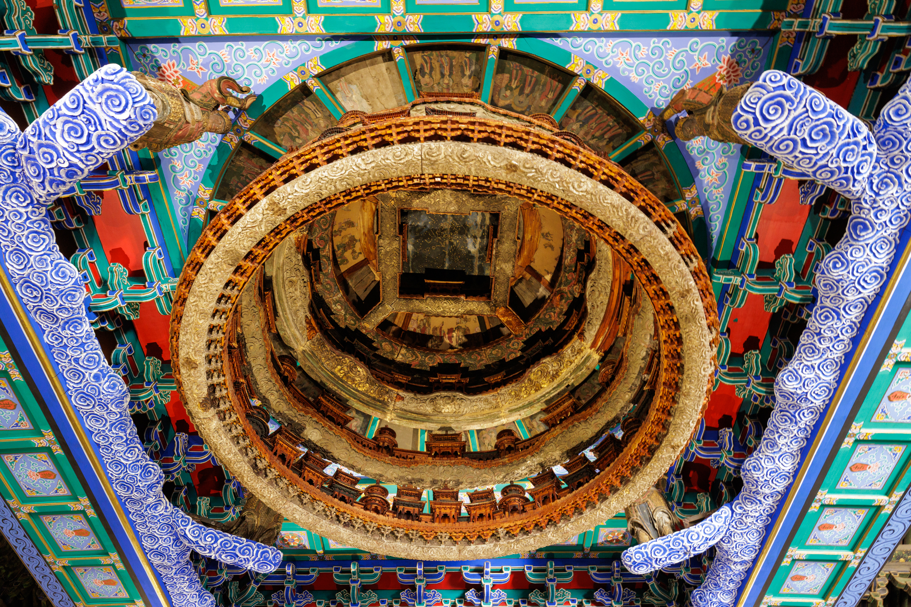 北京隆福寺萬善正覺殿天宮藻井。新京報記者 王子誠 攝