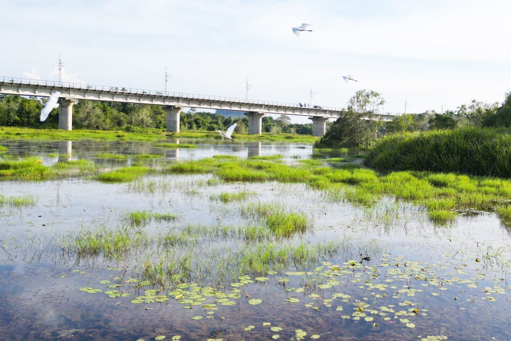 走進(jìn)馬來(lái)西亞彭亨州的馬東鐵項(xiàng)目建設(shè)現(xiàn)場(chǎng),一幅人與自然和諧共生的畫(huà)卷徐徐展開(kāi):筆直的鐵路在茂密雨林中延伸,鋼鐵軌道穿越濕地秘境,數(shù)公里長(zhǎng)的橋梁橫跨原野,隧道出口處綠意盎然,盤(pán)旋的鳥(niǎo)兒以及嬉戲的野鴨相映成趣……一幕幕工程與自然交融的生動(dòng)圖景讓人印象深刻。