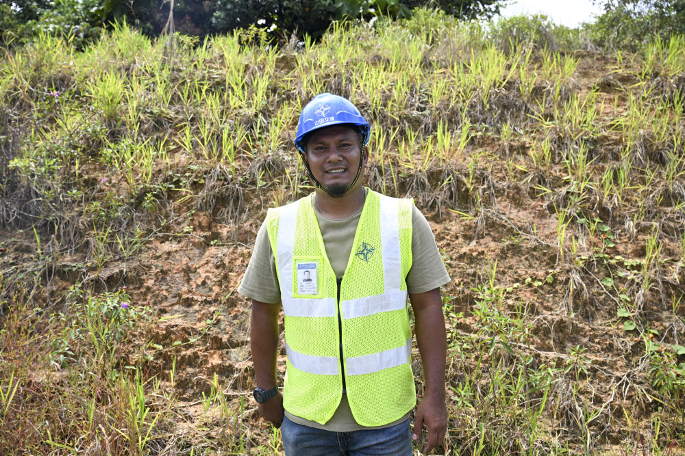 ↑這是10月10日在馬來(lái)西亞彭亨州馬東鐵項(xiàng)目拍攝的環(huán)境官?gòu)亍とf(wàn)·巴祖。他每日負(fù)責(zé)巡查動(dòng)物涵洞,追蹤馬來(lái)貘、野豬等野生動(dòng)物的活動(dòng)蹤跡。