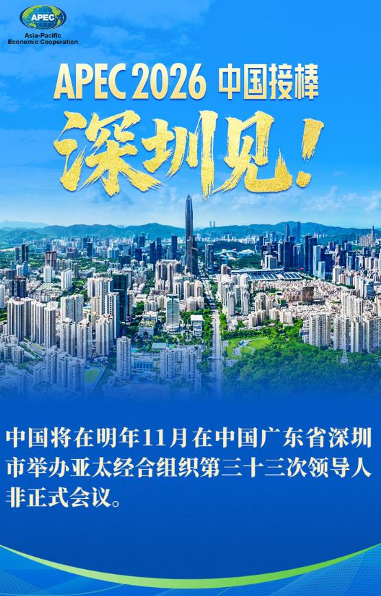 中國(guó)將在明年11月在中國(guó)廣東省深圳市舉辦亞太經(jīng)合組織第三十三次領(lǐng)導(dǎo)人非正式會(huì)議。