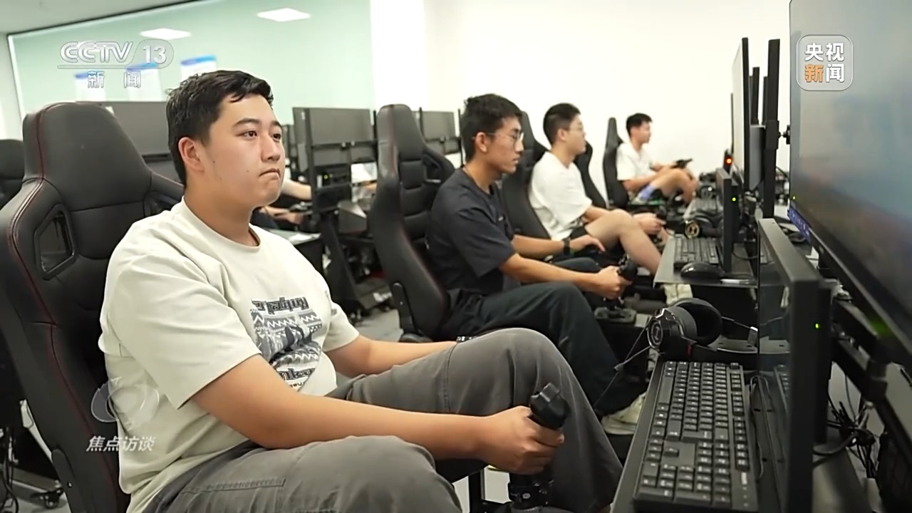 在北京航空航天大學(xué)沙河校區(qū),低空技術(shù)與工程專業(yè)的20多位新生正在進(jìn)行無人機(jī)起飛、側(cè)風(fēng)、順風(fēng)等五個(gè)階段的飛行模擬訓(xùn)練,通過實(shí)操來強(qiáng)化對標(biāo)準(zhǔn)起落航線以及飛行操控規(guī)范的掌握。由于是首次訓(xùn)練,同學(xué)們的手指在操縱桿上的調(diào)整略顯生澀,屏幕上的航線一度也偏離了預(yù)設(shè)軌跡。隨后在老師的實(shí)時(shí)指導(dǎo)下同學(xué)們逐段修正航向,慢慢對操作節(jié)奏熟悉起來。
