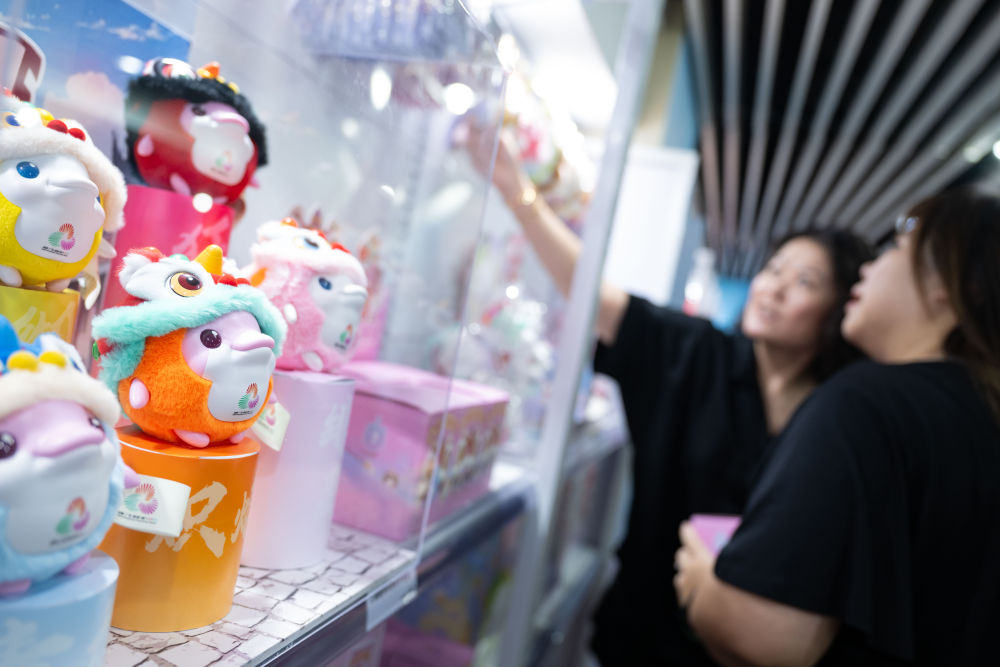 8月1日,市民在十五運(yùn)會(huì)和殘?zhí)貖W會(huì)澳門賽區(qū)官方特許商品零售店選購(gòu)。新華社發(fā)(張金加攝)