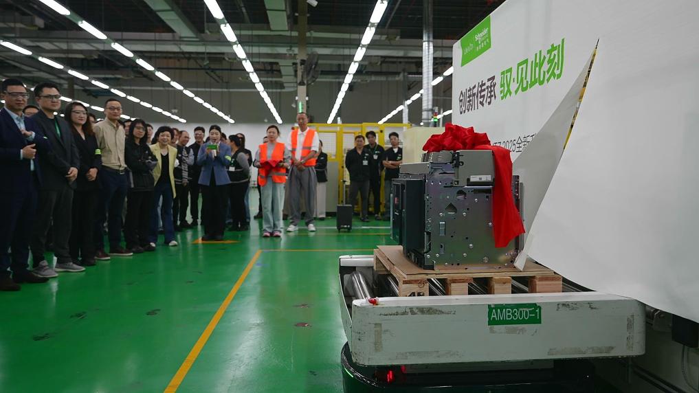 施耐德電氣全新升級的一款空氣斷路器產(chǎn)品在第八屆進博會現(xiàn)場首秀,并于7日在其上??禈蚬S正式下線。受訪者供圖