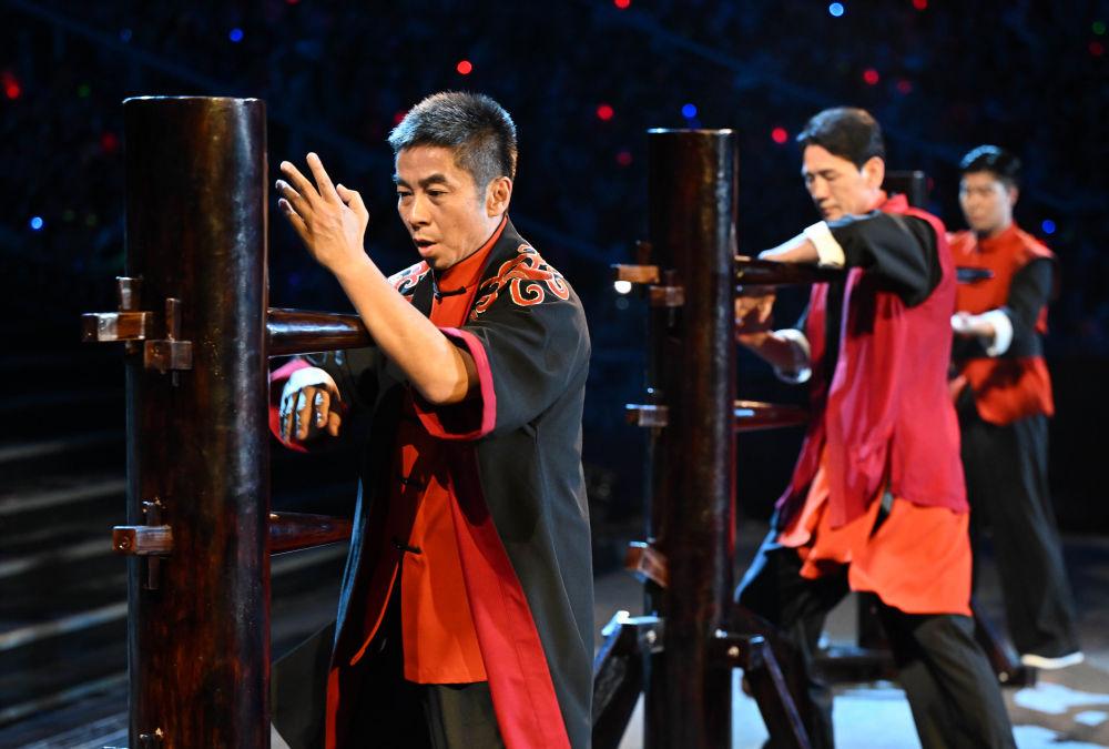 11月9日,演員在開幕式現(xiàn)場表演詠春拳。新華社記者肖藝九 攝