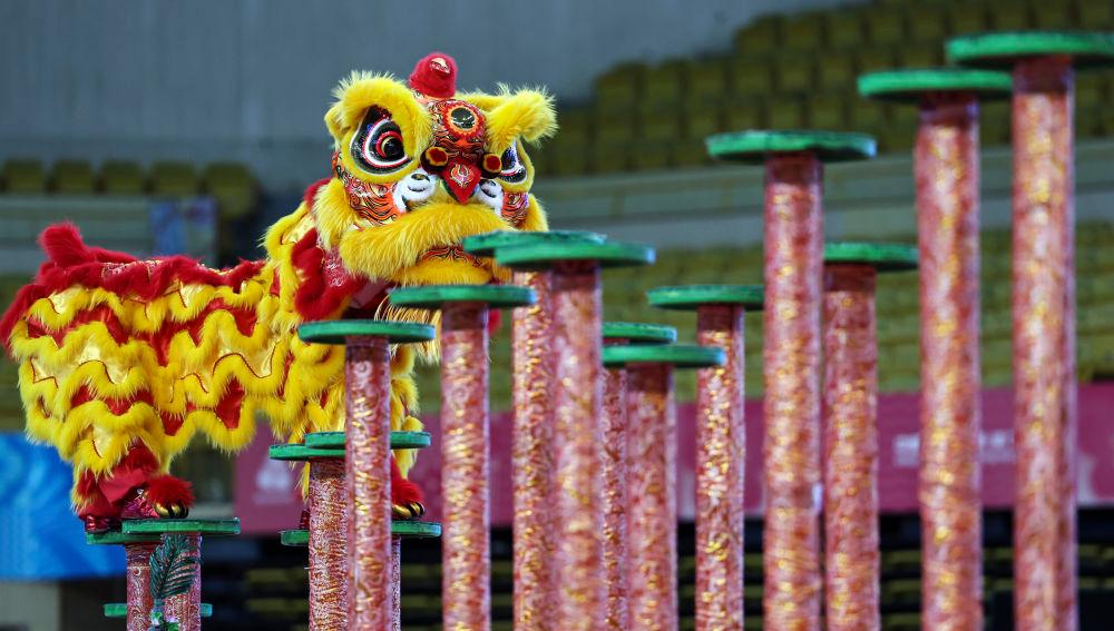 11月11日,粵港澳聯(lián)隊在第十五屆全國運動會群眾展演舞龍舞獅南獅自選項目決賽比賽中。最終,粵港澳聯(lián)隊獲得一等獎。 新華社記者 王鵬攝