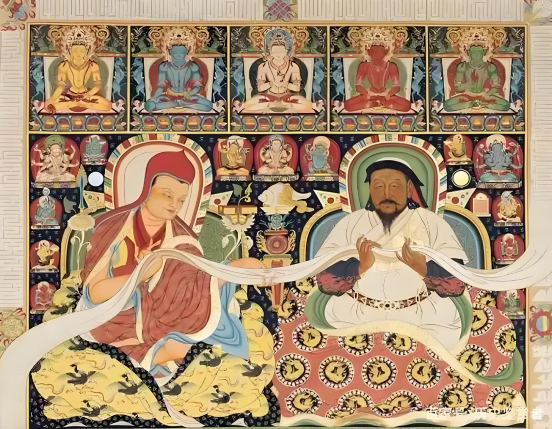 蒙古族自元朝以來(lái)普遍信仰藏傳佛教,也改變了中國(guó)北方和西北民族、邊疆的政治、地域和宗教文化面貌。同時(shí),蒙古人長(zhǎng)期以來(lái)在西藏地方的政治和宗教史上都扮演了極為重要的角色,從八思巴與忽必烈,到三世達(dá)賴?yán)锱c俺答汗、五世達(dá)賴?yán)锱c固始汗,他們之間都建立起了“施供關(guān)系”,體現(xiàn)了蒙藏之間緊密的政教關(guān)系。