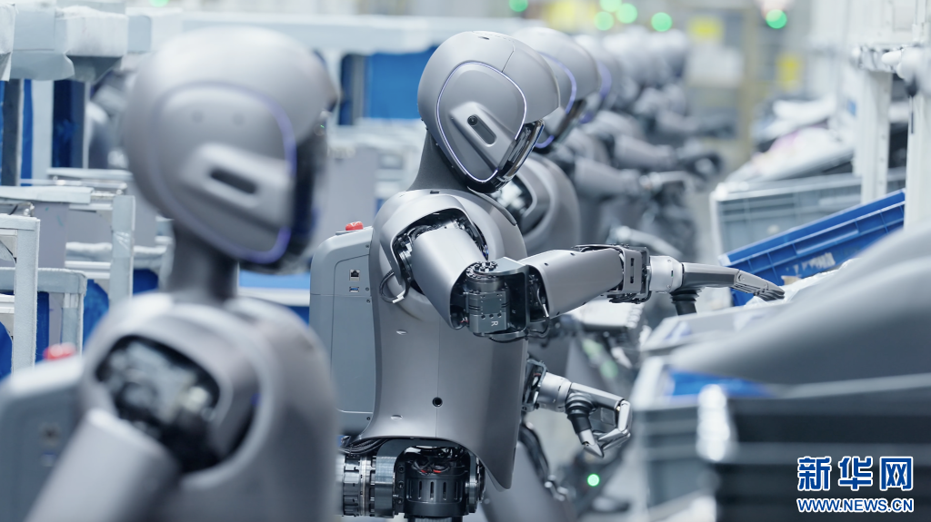 數(shù)十臺人形機器人在工廠“實訓(xùn)”。