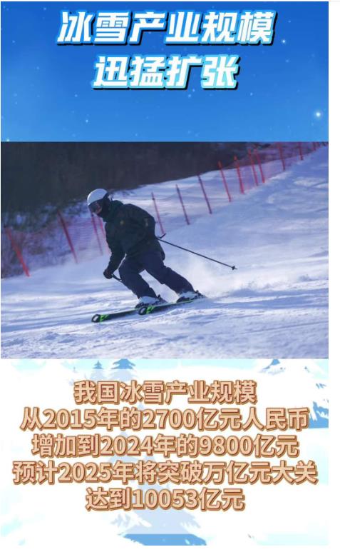 我國冰雪產(chǎn)業(yè)規(guī)模從2015年的2700億元人民幣增加到2024年的9800億元,預(yù)計(jì)2025年將突破萬億元大關(guān),達(dá)到10053億元。