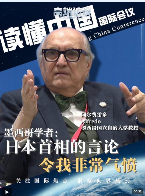 11月30日,“讀懂中國”國際會議在廣州舉行。會上,墨西哥國立自治大學教授阿爾費雷多在提到日本首相高市早苗涉臺錯誤言論時表示,“我感到非常氣憤”。