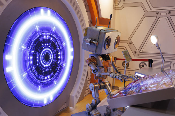 2025年6月28日在中國科學(xué)技術(shù)館《Project X:星際友好計劃》航天科幻擴展現(xiàn)實(XR)大空間體驗展拍攝的人工智能機器人星啟8號。新華社記者 金立旺 攝