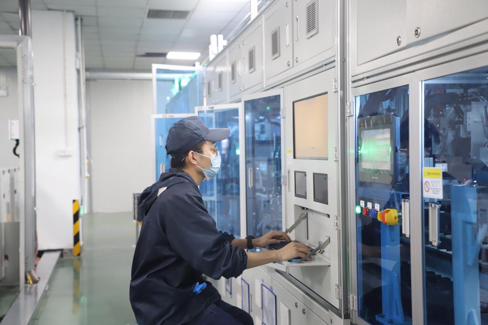 安徽池州高新區(qū),池州市駿智機電科技有限公司的生產(chǎn)車間里,一片片新能源動力電池頂蓋板平穩(wěn)“走”下生產(chǎn)線。