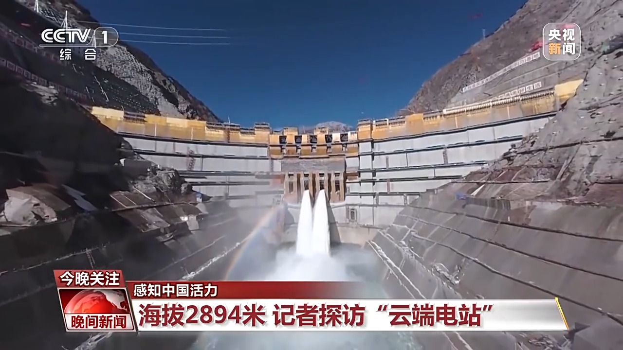 總臺(tái)央視記者古峻嶺在海拔2894米的葉巴灘水電站壩頂介紹,隨著首批機(jī)組投產(chǎn),葉巴灘成為金沙江上游已投產(chǎn)的最大水電站。站在壩頂望去,兩條白色水柱如同巨龍,正從大壩中間的泄流孔道噴涌而出,陽(yáng)光照射在水霧之上,一道斑斕的彩虹隨之浮現(xiàn)。這座建設(shè)歷時(shí)近10年的水電站,于27日發(fā)出了第一度綠電。