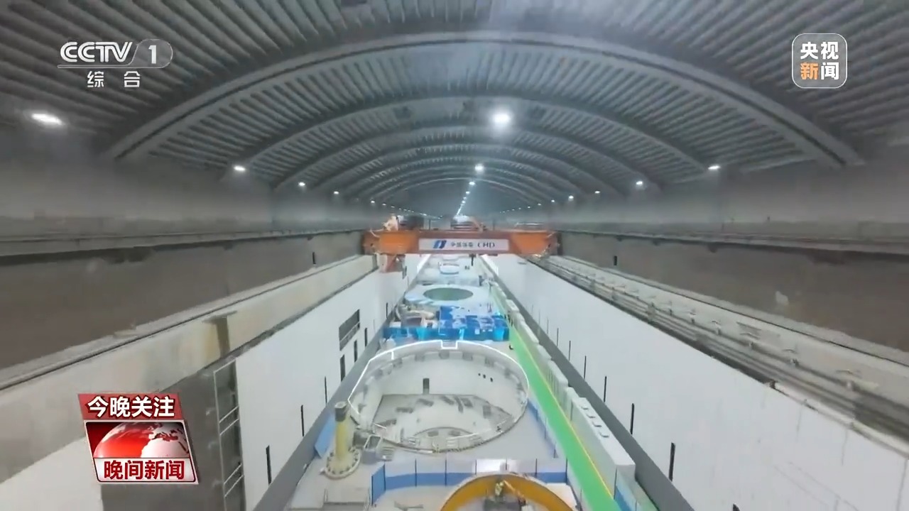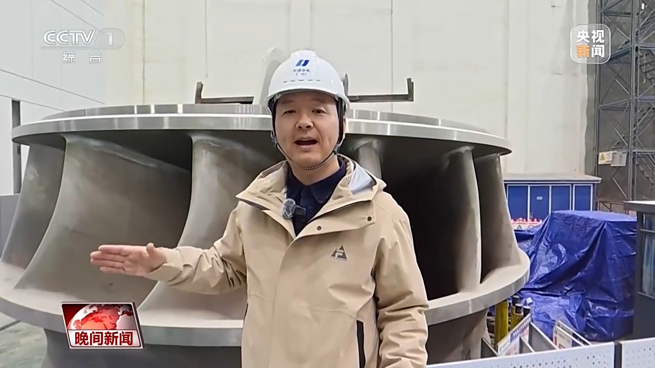 水電站究竟是如何發(fā)電的?記者身后就是發(fā)電機(jī)組最關(guān)鍵部件之一的轉(zhuǎn)輪,澎湃的高壓水流從190米的高處沖擊下來(lái),推動(dòng)轉(zhuǎn)輪高速旋轉(zhuǎn)。它1分鐘通過(guò)的水量近2萬(wàn)立方米,能夠灌滿(mǎn)大概8個(gè)標(biāo)準(zhǔn)游泳池,可滿(mǎn)足超過(guò)4萬(wàn)個(gè)三口之家一年的用電需求。